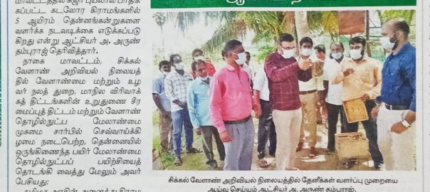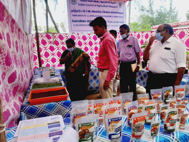 ICAR-Krishi Vigyan Kendra, Sikkal, Nagapattinam and Agriculture & Farmers welfare department, Nagapattinam jointly organized district level Genetic Diversity Fair and Jal Shakthi Abhiyan awareness Program at KVK, Nagapattinam on 16.10.2022. In this program, created awareness on traditional varieties cultivation, conservation and Water management technologies, Drought, flood tolerant traditional varieties were also explained to the farmers. Dr. Arun Thamburaj, IAS, District Collector headed the program. Mr.J.Akhanda Rao, JDA welcomed the gathering. As a special invitee MLA, Kilvelur, Chairman TAHDCO, Chairman, Fisheries Development Corporation were felicitated the program. Farmers Scientists interaction, Exhibition were also conducted in the program. Dr.A.Gopalakannan, Programme Coordinator, KVK given a prelude about the programme. Lectures on Traditional Varieties cultivation and water saving technologies, Pest and Disease Management, Value addition and Nutritional benefits of Traditional varieties and Fish culture were given by Subject Matter Specialists Mr.E.Hino Fernando (Fisheries Extension), Dr.K.Chandrasekar (Plant Protection), Dr.V.Kannan (Agronomy), Mr.K.Ragu (Horticulture), Dr.A.Mathivanan (Home Science), and Programme Assistants Mr. R. Vedharethinam, Mr.V.Gnanabharathi, Mrs.G.Ramya were also participated and explained the programme activities to the farmers. There were about 183 farmers, 32 officials, 50 students in total 265 were participated and benefited.